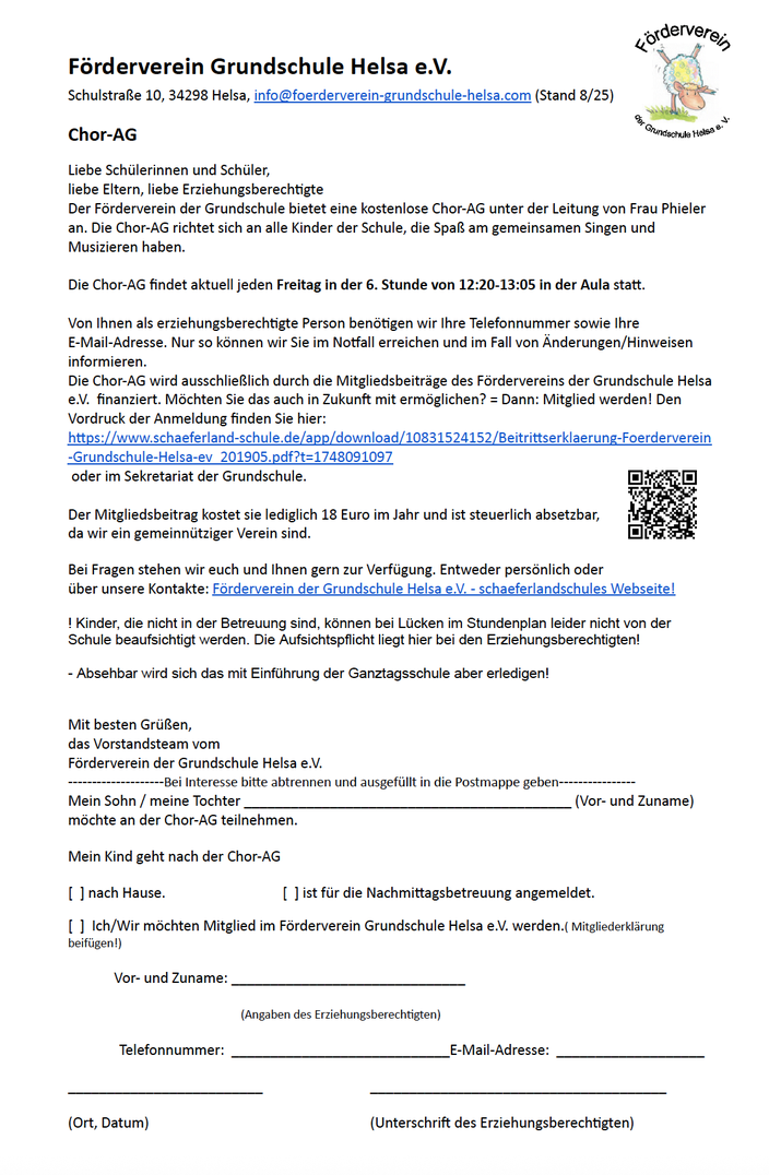 Liebe Mitglieder des Fördervereins Grundschule Helsa e.V., am Donnerstag, den 12.03.2020 findet um 18:30 Uhr in der Aula der Schäferland-Grundschule in Helsa die diesjährige Jahreshauptversammlung statt. Dazu laden wir herzlich ein und hoffen auf rege Teilnahme. Mit der diesjährigen Jahreshauptversammlung steht das Amt des Schriftführers/der Schriftführerin zur Verfügung. Sie möchten sich aktiv im Förderverein engagieren, sind kommunikativ, schreiben gern und kennen sich mit den Microsoft Office Produkten wie Word, Excell etc. aus? Dann sprechen Sie uns gern vor der Jahreshauptversammlung an oder schreiben uns über Foerderverein-Helsa@web.de, damit wir einen Termin zum persönlichen Kennenlernen vereinbaren können. Wir freuen uns auf Verstärkung in unserem Team.